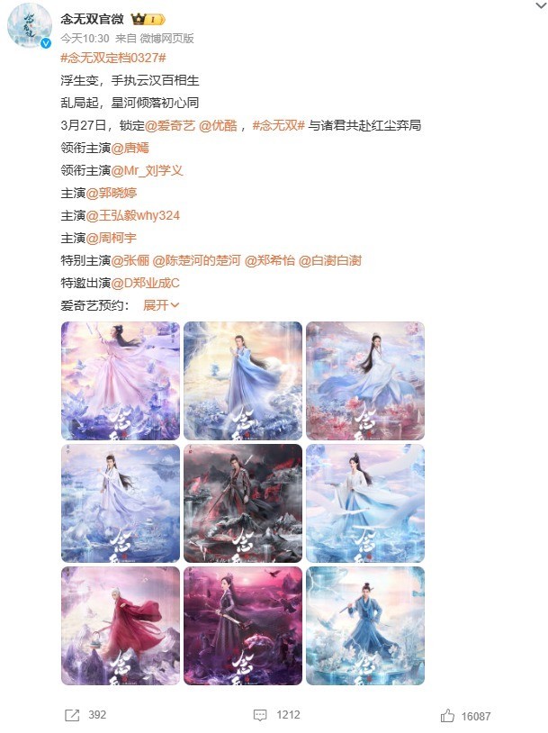 念无双官宣3月27日定档 唐嫣携仙侠新作震撼回归